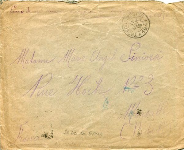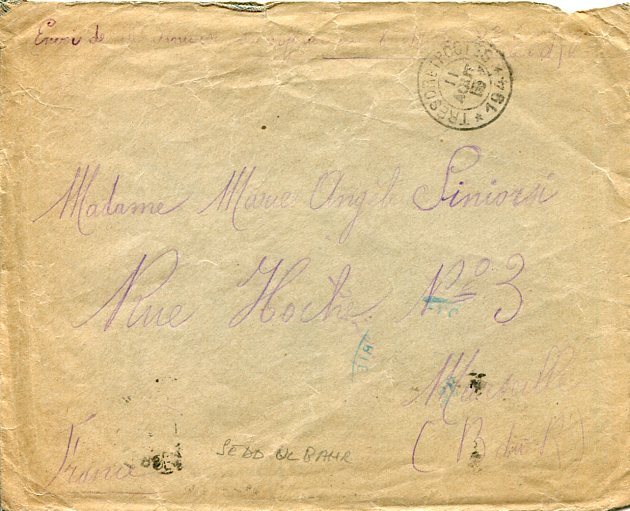 French Levant: 1915 (11 August). Soldier cover during Dardanelles campaign with its contents to France written from Seddülbahir struck by TRESOR ET POSTES * 194 (used by French Expeditionary Corps of the Orient at Gallipoli between 16 April to 2 October 1915) datestamp and on reverse 18 August Marseille arrival cds. Seldom seen cover with contents from Gallipoli only used for six months.