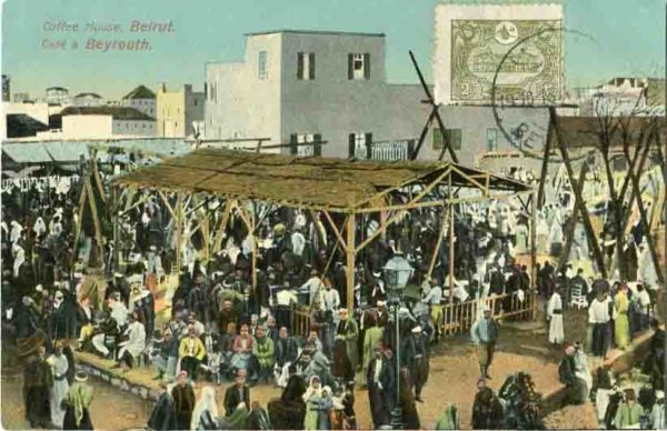 Ottoman Lebanon: 1915 (19 Oct). Picture postcard used in Beirut titled Coffe House, Beirut franked with 2pa and tied by BEYROUTH bi-lingual date stamp. Scarce local usage