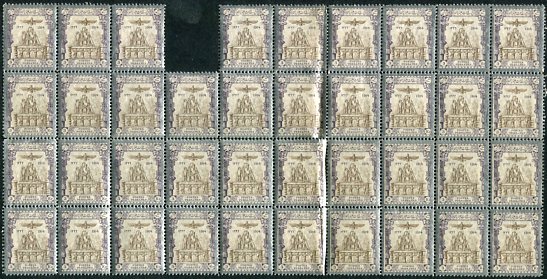 Iran: 1915 (April). Coronation of Ahmad Shah Qajar issue 3kr perf. 11 x 11 1/2 unmounted mint block 39. Few tone spots on reverse and heavily separated otherwise very fine and scarce as multiple. Sc. 572,  Sg. 437