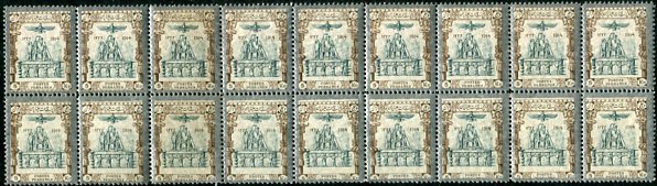 Iran: 1915 (April). Coronation of Ahmad Shah Qajar issue 5kr perf. 11 x 11 1/2 unmounted mint block of 18. Few tone spots on reverse otherwise very fine and scarce as multiple. Sc. 573, Sg. 438
