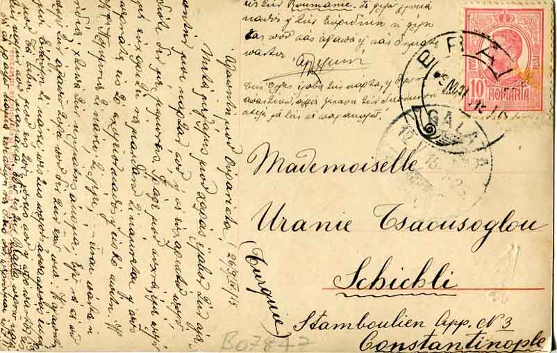Romania: 1915 (9 May). Photocard of Princess Elisabeta to Sisli, Istanbul franked with 10b and tied by BARAILA datestamp and 12 May Galata arrival cds. ed. Stengel & Co.