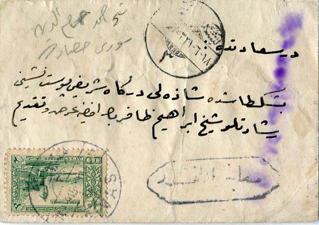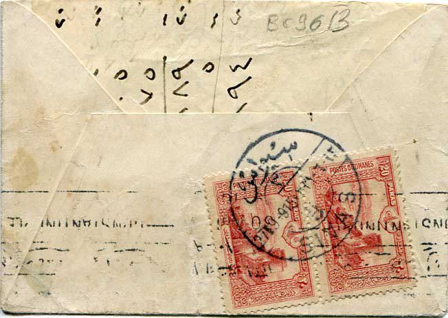 Ottoman Turkey: 1915 (12 August). Small cover to Istanbul franked with 10pa and on reverse pair of 20pa of 1914 pictorials for one piastre single weight letter rate and 10pa for war orphans tax tied by Sivas 3 (A&P type 11) datestamps and oblong SIVAS CENSOR cachet and 30 August Besiktas 3 arrival cds.