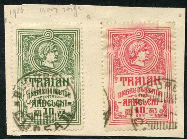 Romania: 1916 TRAIAN official beneficiary used stamps on paper.