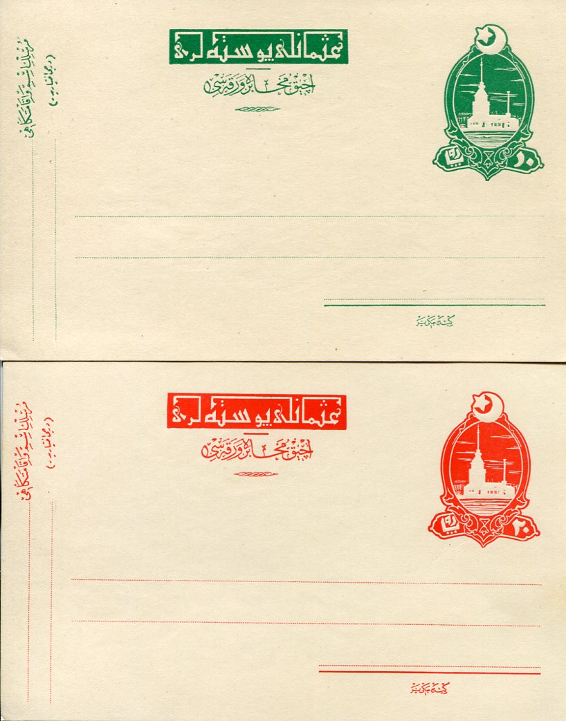 Ottoman Empire: 1916 Leander’s Tower design unused 10pa and 20pa postal stationery cards. Isfila AN151, AN152