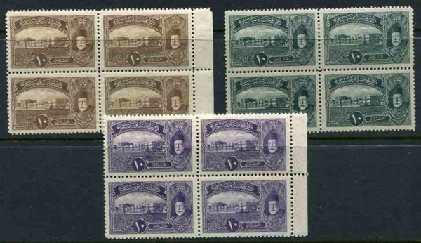 Ottoman: 1916 (15 November). Vienna print Dolmabahce Palace commemorative issue, very fine mint o.g. mostly marginal block of 4 set. Isfila 712/714