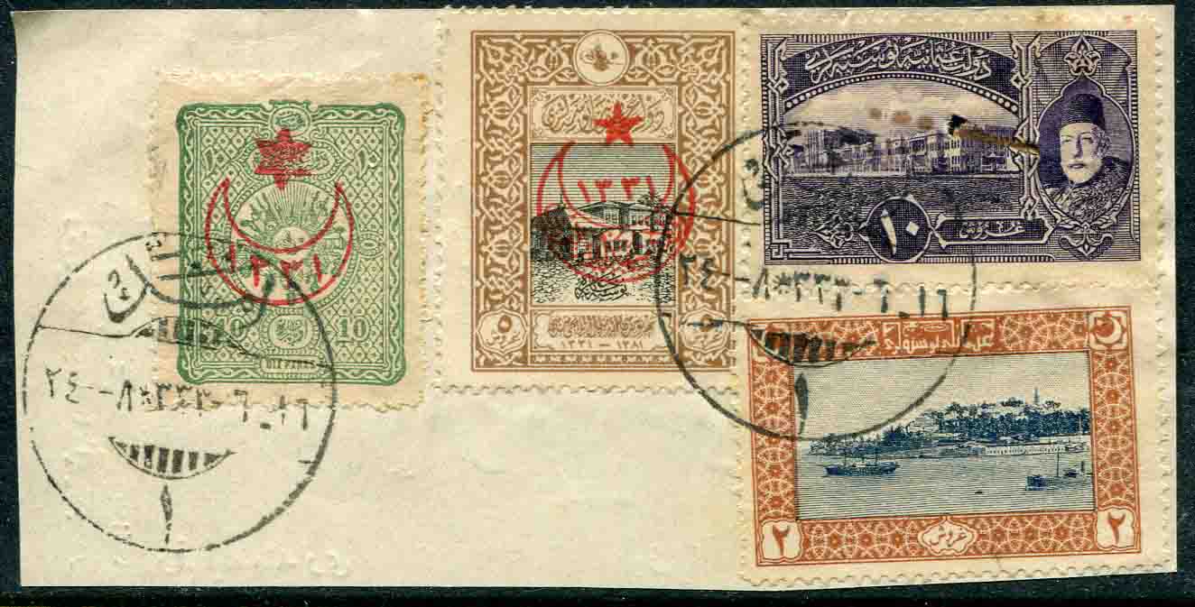 Ottoman Turkey: Multiple franked piece struck by all Arabic AMED 1 (today EMET), vilayet Hudavendigar, A&P type 2 datestamps.
