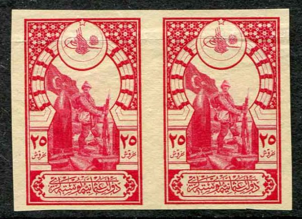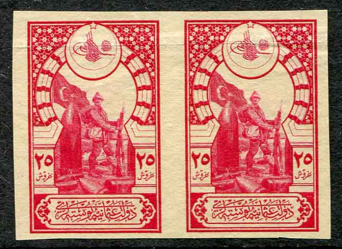 1917 Turkey 25pi unused Imperf Pair