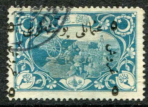 Ottoman: 1917 (10 September). Unissued Vienna print pictorials 2pa Howitzer at Sedd el Bahr, Gallipoli surcharged all Arabic 5pa for postage use fine used with surcharge misplaced variety. Isfila 870 SE25