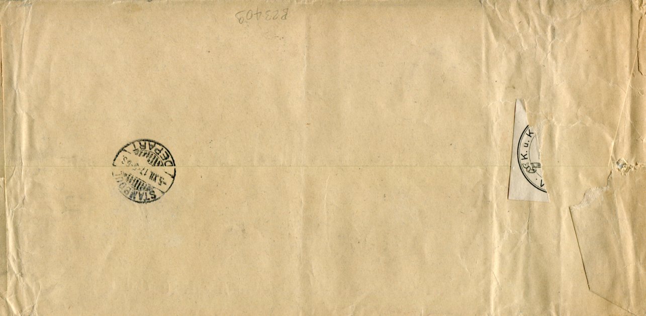 Ottoman Turkey: 1917 (5 December). Austrian private insurance company DONAU imprinted large envelope to their HQ franked with strip of three 50pa Gallipoli Map and pair of 5pa overprinted printed matter stamps for four piastres double weight registered letter rate tied by Stamboul datestamps and censor cachets. Reverse same day dispatch cds. Isfila 510, 885