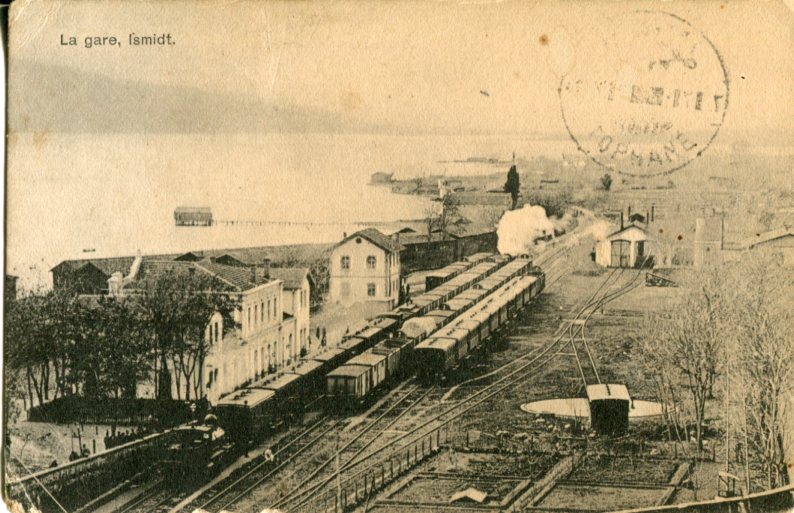 Ottoman Turkey: 1917 postcard titled ‘La gare, Ismidt’ to Istanbul franked with 20pa of 1914 pictorial tied by IZMID – ISMIDT (A&P type 9) datestamp and arrival cds. ed. Thausis-Zade Mehmed Nasif
