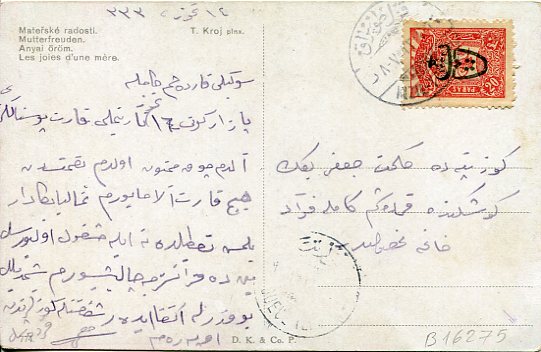 Ottoman Turkey: 1917 (22 July). Postcard used in Istanbul franked with 20pa PTT overprinted war issue of 1917 tied by KIZILTOPRAK – KIZIL-TOPRAK (vilayet Istanbul, A&P type 4) datestamp and faint GÖZTEPE – GUEUZ-TEPE (A&P type 2, R) arrival cds.