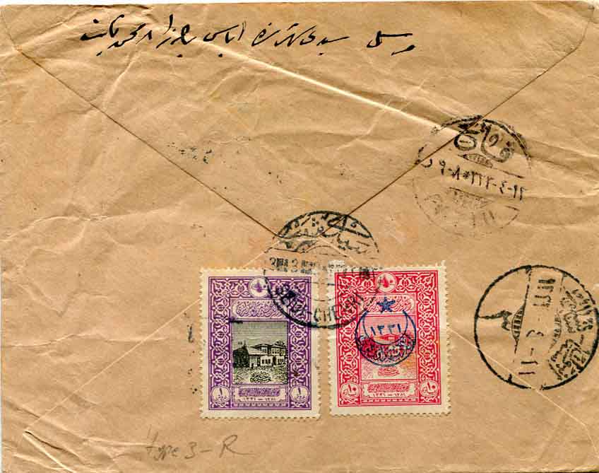 Ottoman Turkey: 1917 (3 March). Cover to Istanbul franked with 1pi pictorial for one piastre letter rate and 10pa overprinted for war orphans tax tied by SEYDIŞEHRI– SEIDI-CHEHRI (vilayet Konya, A&P type 3, R) datestamp and 12 April Istanbul & Fatih arrival cds’s. On front #1 boxed Istanbul censor cachet.