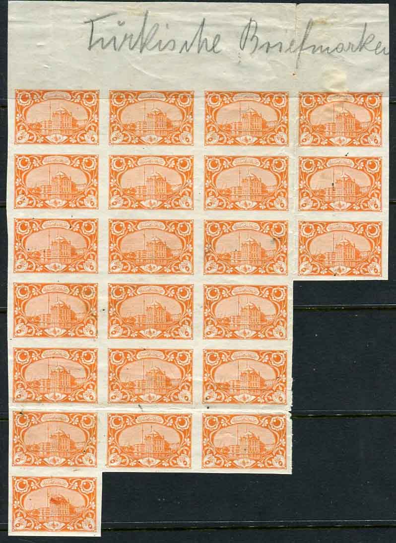 1917 Turkey Vienna Print 5pa Imperf Block of 22