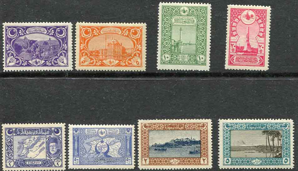 Ottoman: 1917-1918 Vienna print pictorials mint o.g. set of 8. Isfila 880/87