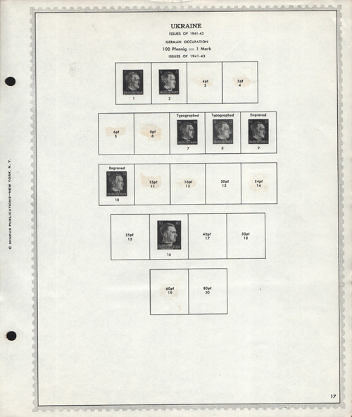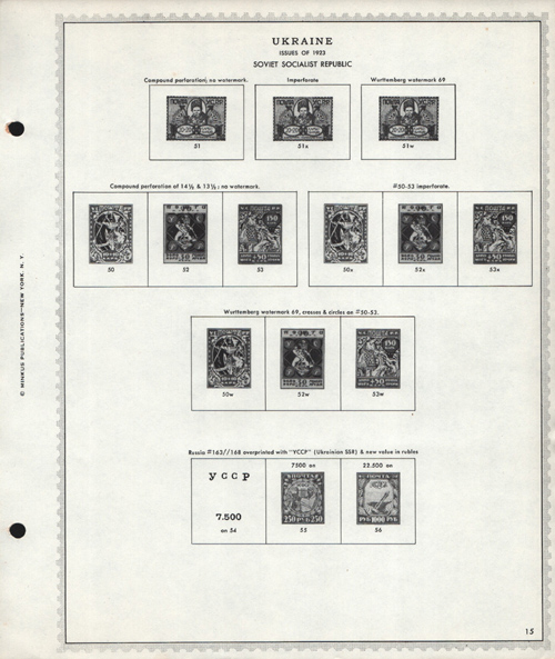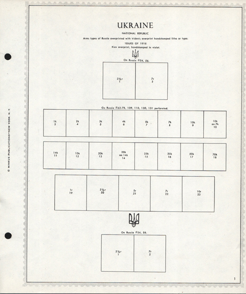 Ukraine: 1918 – 1943 Minkus unused 17 pages for stamps of Ukraine Republic and German Occupations. Few hinge remainders otherwise very clean.