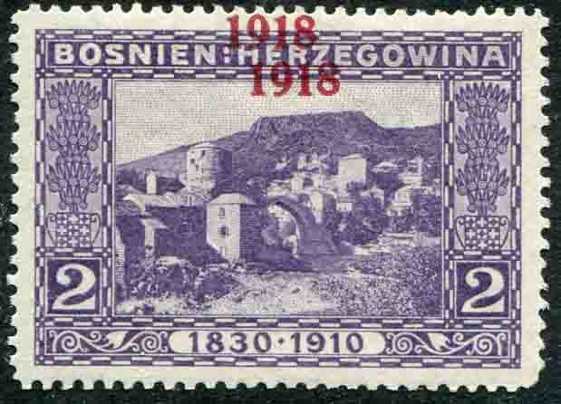 Bosnia and Herzegovina: 1918 (1 September). 1918 overprinted 2h Austrian occupation pictorial mint o.g. with overprint double error. Sg. 439b