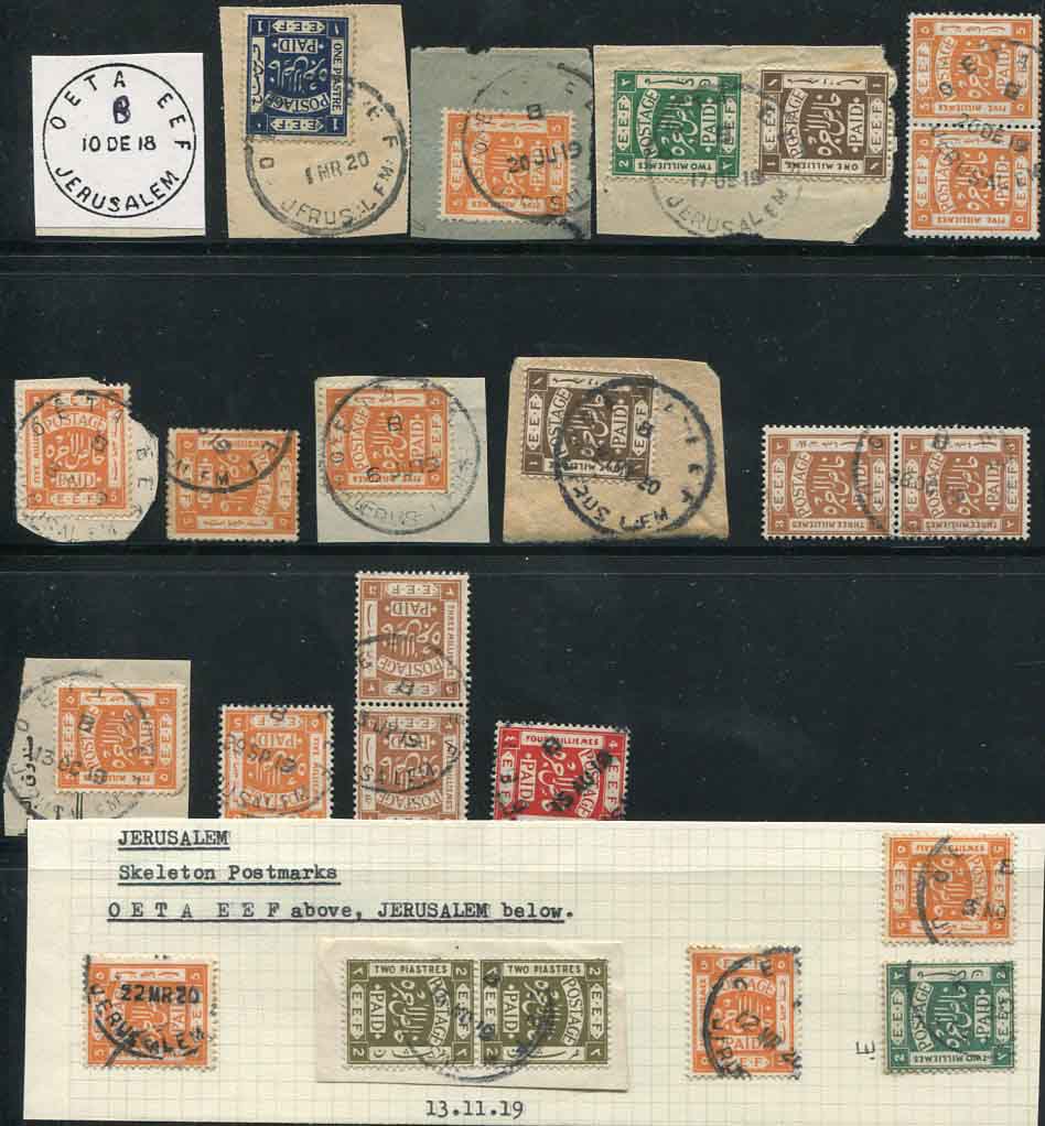 Palestine: 1918 – 1919 collection of twenty-three EEF stamps with O E T A E E F “B” JERUSALEM cancellations