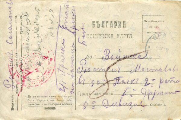 Bulgaria: 1918 (20 January). Bulgarian formular stationery from a wounded Ottoman soldier at Vratsa Military Hospital struck by part datestamp. He was probably wounded when Ottoman and Bulgarian forces attacked to Romania.