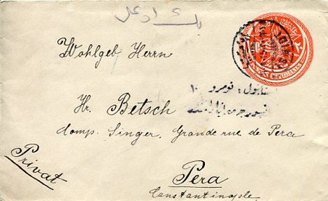 Ottoman Turkey: 1915 (31 January). 20pa postal stationery envelope to Istanbul struck by IZMIT – ISMIDT (A&P type 15) datestamp. Reverse same day Istanbul arrival cds.