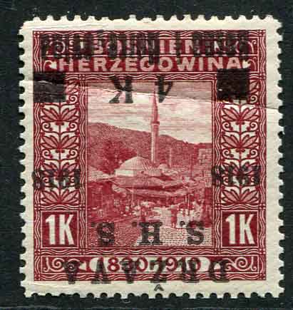 1918 Yugoslavia Bosnia 4k on 1k Surcharge Inverted Error
