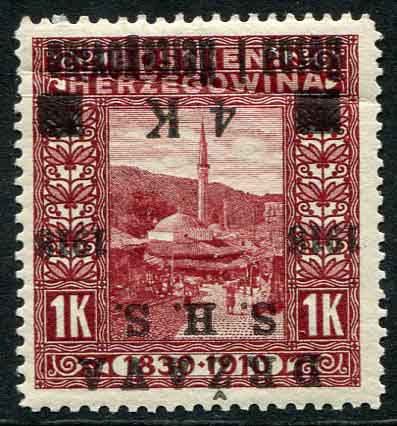 1918 Yugoslavia Bosnia 4k on 1k Surcharge Inverted Error