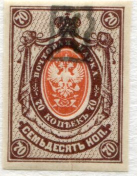 Armenia: 1919 (October). Russian Arms type 70k imperf handstamped boxed āZā monogram in black mint o.g. Mi. 25a. *