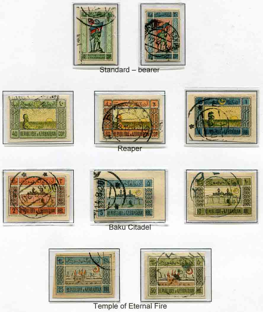 Azerbaijan: 1919 (20 October). First printing pictorial used imperforate set on white paper. Scott 1/10