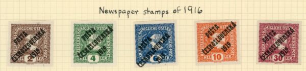 Czechoslovakia: 1919 newspaper stamps of 1916 of Austria overprinted ‘Posta Ceskoslovenska 1919’ mint o.g. set. *