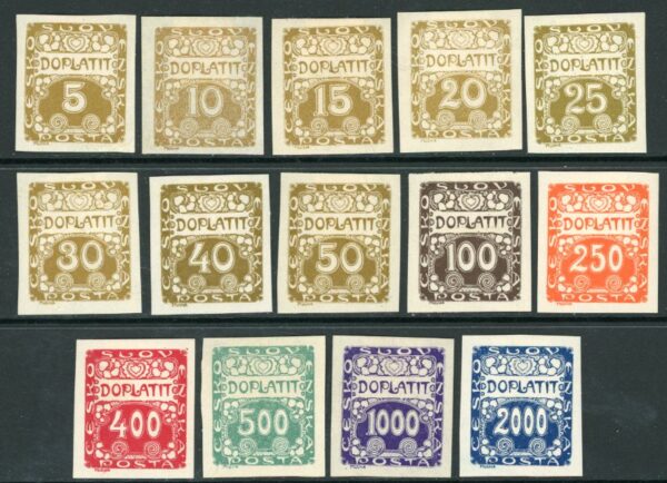 Czechoslovakia: 1919 (1 February) -20 imperforate postage due mint o.g. set. Sg. D24/D37 *