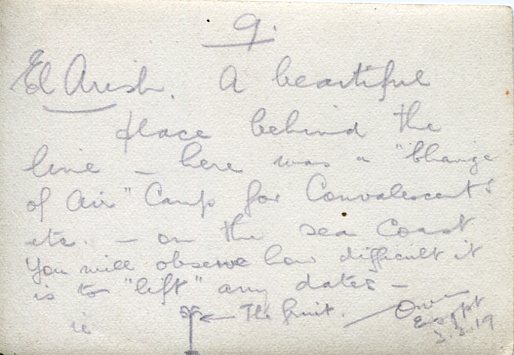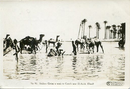 Egypt: Real photograph titled ‘Soldiers Giving a wash to Camels near El-Arish (Sinai)’ with a pencil note dated 3 March 1919 on reverse presumably from a soldier. 90 x 60mm.