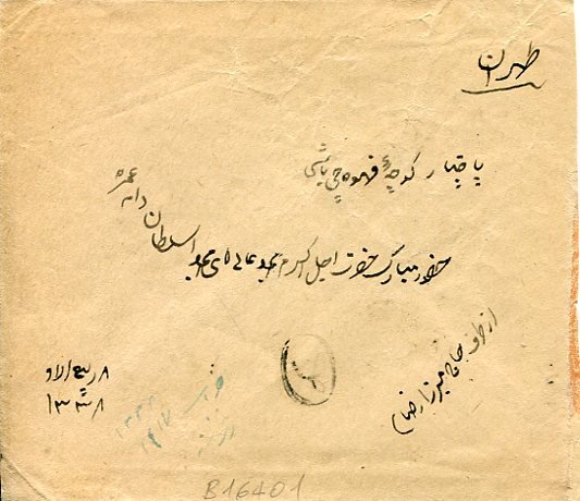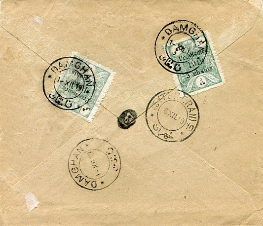 Iran: 1919 (1 December). Cover to Tehran franked with two 3ch overprinted Provisoire 1919 tied by DAMGHAN datestamps and 6 December Teheran arrival cds.