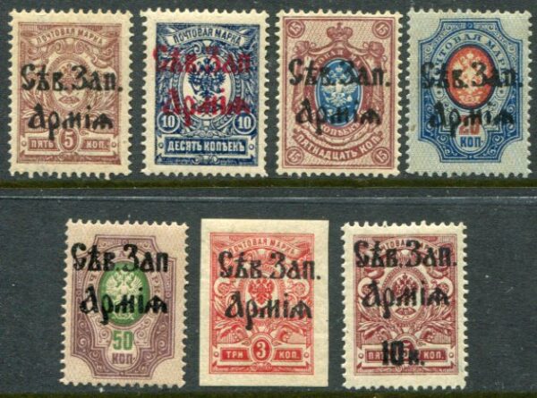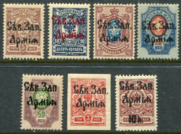 Russian Civil War: 1919 (August). North-Western Army Pskov issue unmounted mint values to 50k. Sg. 7/20 (between). **