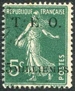 Syria: 1919 (21 November). Issued at Beirut on French stamps TEO 5m surcharged on 5c, used. Sg. 5