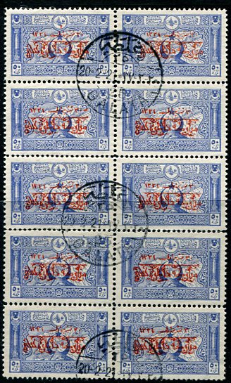 Ottoman Empire: 1919 (21 January). Armistice overprinted commemorative issue 50pa Gallipoli Map block of ten struck by Galata 25 favour cancel. Isfila 894