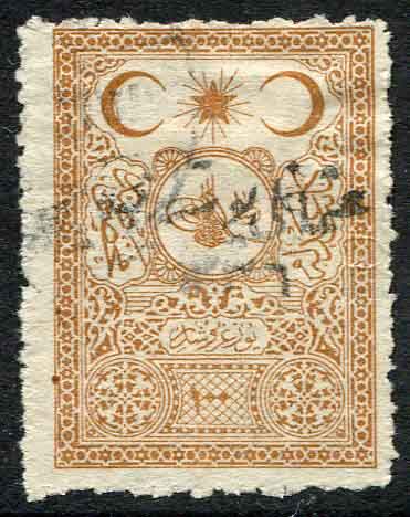 Anatolian Government: 1920 (24 December). OSMANLI POSTALARI 1336 type I handstamped on 100pi brown Ottoman Notarial Fiscal struck by faint part datestamp. signed by Nouri. Isfila 981