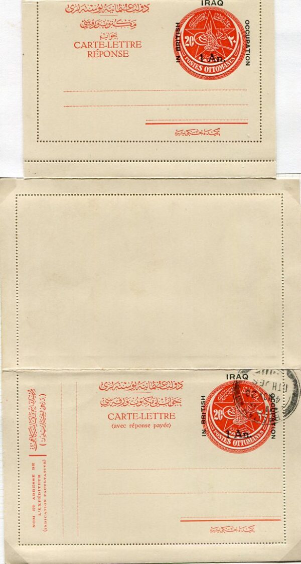 Iraq: 1920 unused Ottoman 20pa prepaid lettercard surcharged 1 An. Iraq In British Occupation struck by Baghdad 4 November 1920 datestamp. Rubec & Al-Manaseer: BO-10