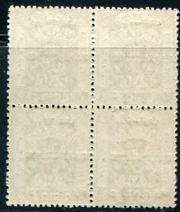 Palestine: 1920 (1 September). Trilingual Palestine overprinted on EEF issue 5pi deep purple perf. 15 x 14 unmounted mint block of four. Top pair hinged. Sg. 23