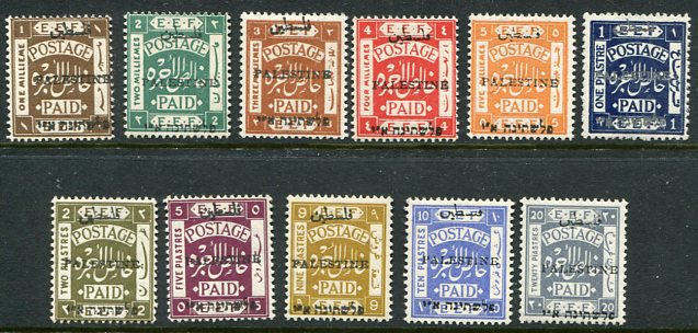 Palestine: 1920 (1 September). Trilingual Palestine overprinted on EEF stamps perf. 15 x 14 mint o.g. set of 11. Sg. 16/26