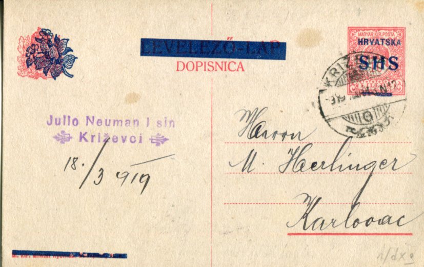 1919 Yugoslavia Croatia Krizevci to Karlovac
