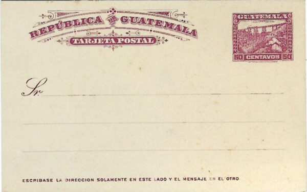Guatemala: 1921 50c Las Vacas Railway Bridge, violet on thick white card unused