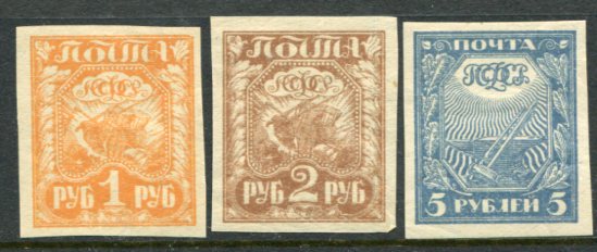 Russia – Soviet: 1921 Agriculture and Industry imperforate unmounted mint set. Mi. 151/153. **