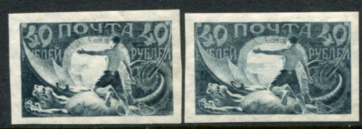 Russia – Soviet: 1921 Revolution 40r both size imperforate unmounted mint set. Mi. 155x, 155y. **