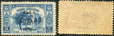 Anatolian Government: 1921 (1 December). Ottoman stamps overprinted to commemorate liberation of Adana and withdrawal of the French Forces 3pi pictorial of 1920 issue unmounted mint with overprint double one inverted and offset error. Burak 873CK, Mi. 758II, Sg. A105, Yv. 634