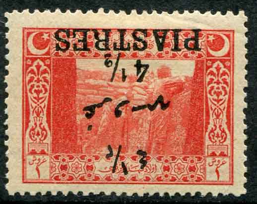 Ottoman: 1921 surcharged pictorial issue 4 1/2pi on 1pi Gallipoli Trenches mint o.g. with surcharge inverted error. Isfila 944 SE55, Sg. 972a