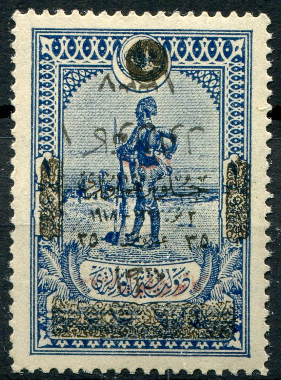 Anatolian Government: 1921 (1 December). Ottoman stamps overprinted to commemorate liberation of Adana and withdrawal of the French Forces previously overprinted 35pi on 1pi of Sultan’s Accession issue mint o.g. with inverted overprint and red proof handstamp. Very few recorded. Burak 878CIIIK, Mi. 763II, Sg. A109, Yv. 639