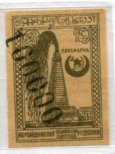 Azerbaijan: 1922-23 Handstamped from Metal Dies in a numbering machine unused 100,000r surcharged on 2r. Scott 47