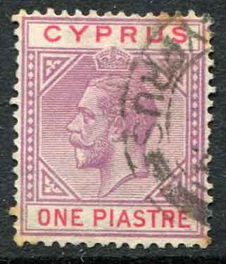Cyprus: 1922 King George V wmk Mult Script CA 1pi used with broken bottom left triangle error. One shortish perf on right and few rust spots. Sg. 90a