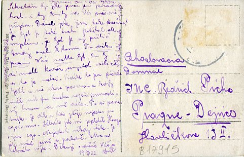 Romania: 1922 postcard of Galati Port to Prague. Stamp fallen. ed. Horovitz