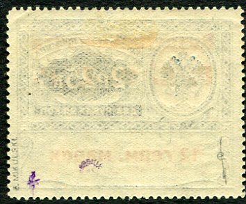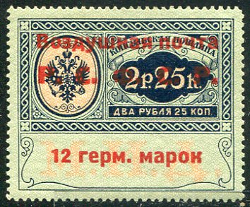 Russia: 1922 (July).  Consular Fee stamps surcharged for Berlin – Moscow official airmail service 12 Mk on 2r25 mint o.g. with few owner / expert signatures on back. Sg. 265