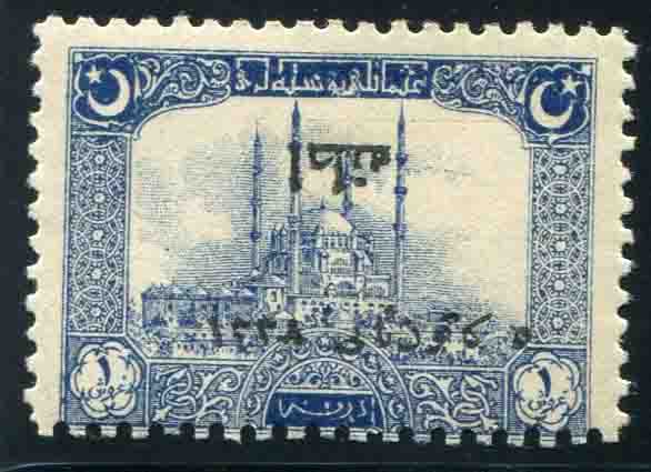 Turkey: 1922 (5 Jan). “Adana 5 Jan. 1922” overprinted Edirne Selimiye Mosque 1k unmounted mint with Inverted Adana error. Small gum disturbance but still very fresh. Only 5,912 sets overprinted and errors of this issue quite scarce. Burak 882K